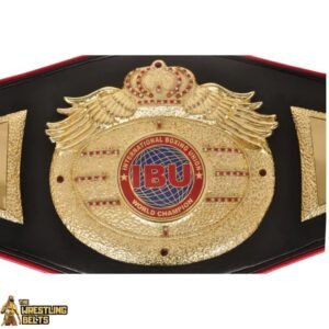 The IBU International Boxing Union Championship Belt stands for global boxing prestige and world-class competition. Crafted to mirror the official title awarded by the IBU, this replica features a green premium leather strap — a nod to traditional world title belts — and a gold-plated centerpiece with the IBU crest in vibrant enamel. Side plates include detailed boxing glove engravings and world map designs, representing the international scope of the championship. Built with solid metal plates and quality stitching, this belt is designed for tournament awards, professional fight events, and high-end collector displays.