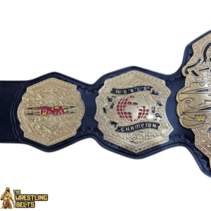 New TNA WORLD Championship Wrestling Belt Brass Alloy Real Leather  is a premium-quality replica designed for serious wrestling fans, collectors, and memorabilia enthusiasts. Featuring solid brass alloy plates for an authentic heavyweight feel, this championship is plated in brilliant gold with precision engraving and enamel detailing. The strap is crafted from genuine real leather, providing both flexibility and long-lasting durability. This belt represents the highest achievement in TNA Wrestling, making it a prized possession for anyone who appreciates championship prestige and craftsmanship. Perfect for display, cosplay, or fan events, it captures the glory and tradition of TNA’s greatest champions.