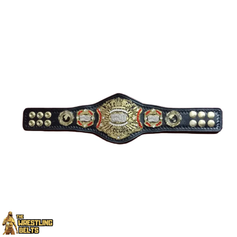 Celebrate the prestige of Ring of Honor wrestling history with the Ring of Honor ROH Wrestling Championship Mini Replica Title Belt. Crafted with remarkable attention to detail, this miniature version mirrors the exact design of the full-sized ROH World Championship belt, making it the perfect collectible for die-hard fans. Made from high-quality materials, this mini belt features gold-plated plates, accurate side plate engravings, and a durable simulated leather strap. Whether displayed in your collection, kept in your wrestling-themed workspace, or given as a gift to a fellow fan, this belt is a true tribute to ROH’s legacy of champions.